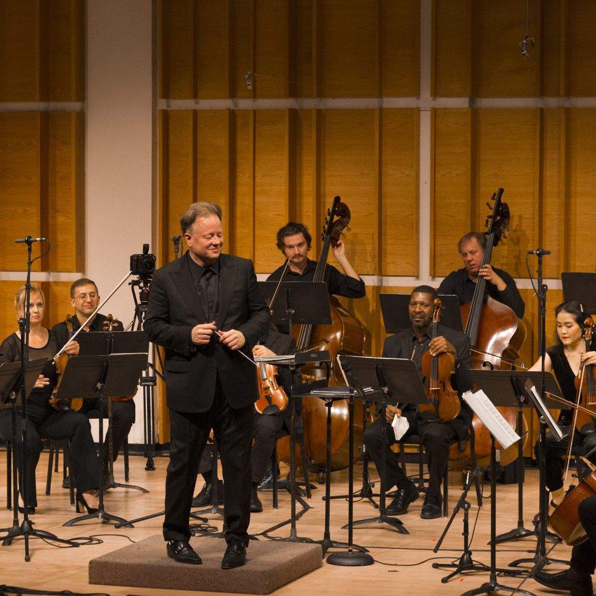 Maestro Justin Bischof (BM ’90, MM ’92, DMA ’98) with Modus Operandi Orchestra at Merkin Concert Hall
