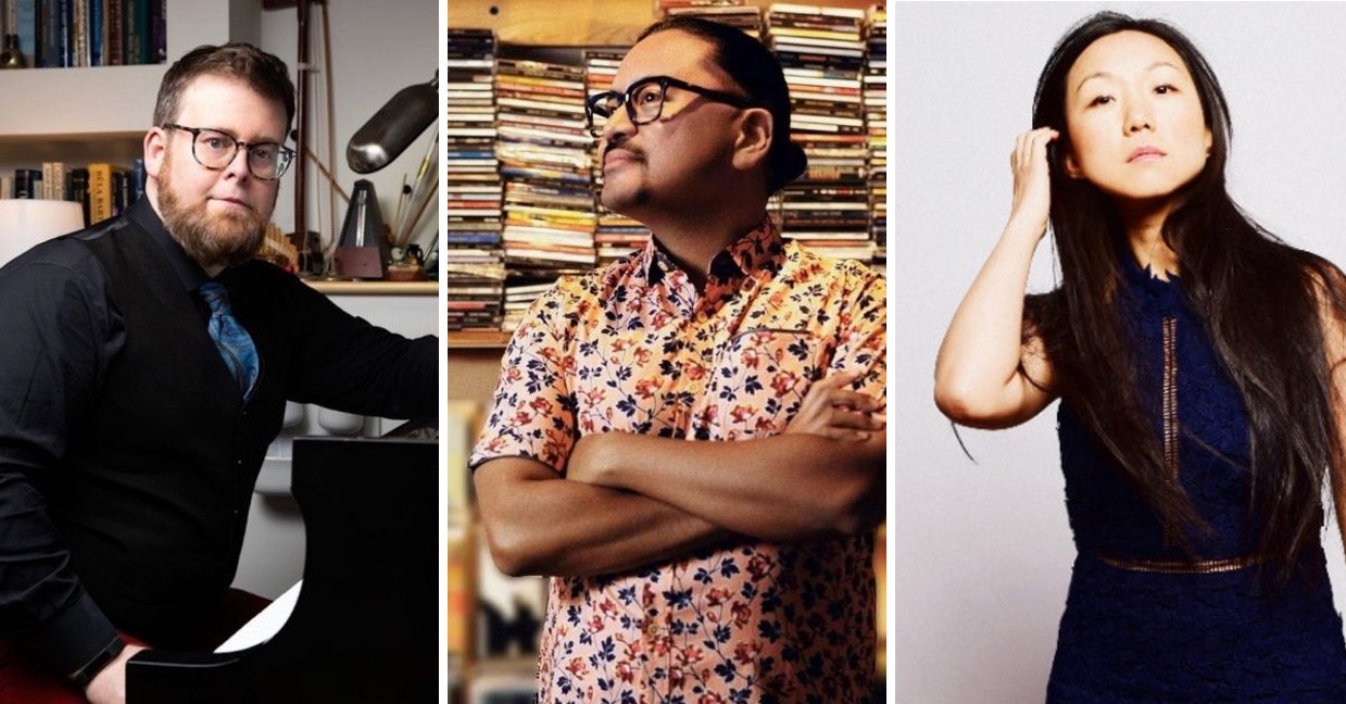 From left to right: David Serkin Ludwig (MM ’97), Jon Irabagon (MM ’03), and Linda May Han Oh (MM ’08, HonDMA ’24).