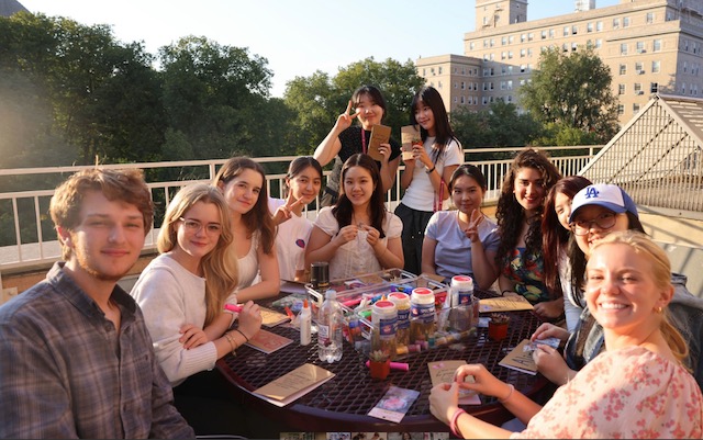 “First Day Butterflies” on the sixth floor terrace in September 2025, hosted by RAs Evelyn, Adaiah, and Gianna