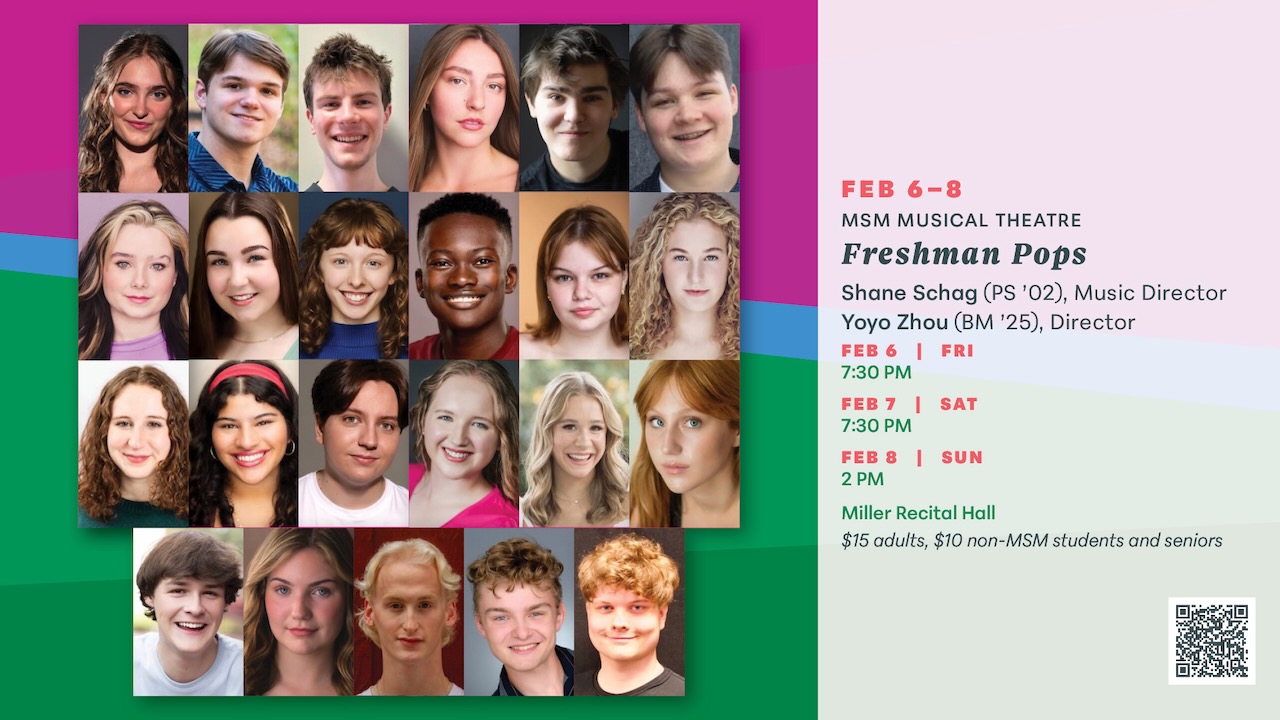 Quinn: Freshman Pops is the first performance of the Musical Theatre freshman class of 2029. Together, we perform a cabaret-style show with fully staged musical numbers of all styles and sizes. It’s always tremendous fun and a highly anticipated introduction to all the new faces each year!