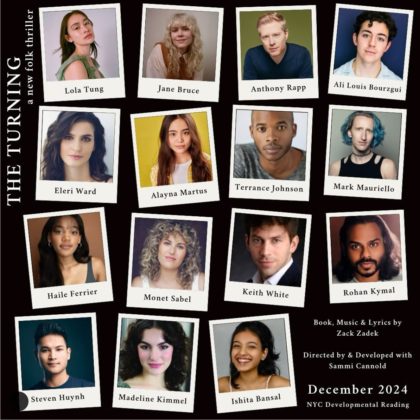 Last year, The Turning was part of the MSM Musical Theatre Lab Series season. “The creative team included director Sammi Canold who was so impressed with our students that she cast two of them in the 29-hour reading,” explains MSM Dean of Musical Theatre Liza Gennaro.